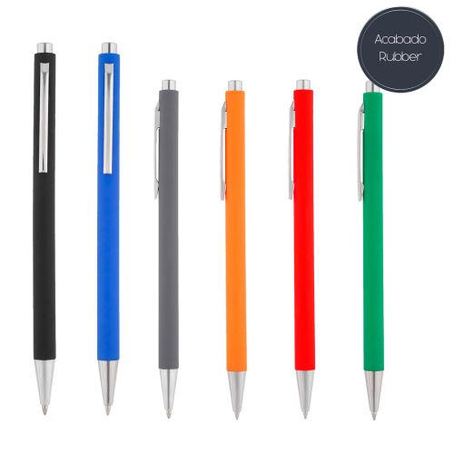 Bolígrafo con acabado rubber; clip y mecanismo de click.