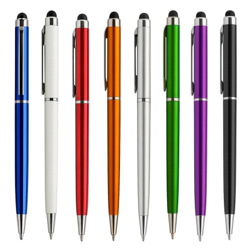 Bolígrafo de plástico con mecanismo retráctil; con apariencia metálica; clip metálico y goma touch screen.
