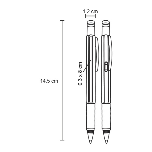 Bolígrafo multifuncional con 2 puntas; desarmador; regla; nivelador; clip y goma touchscreen.