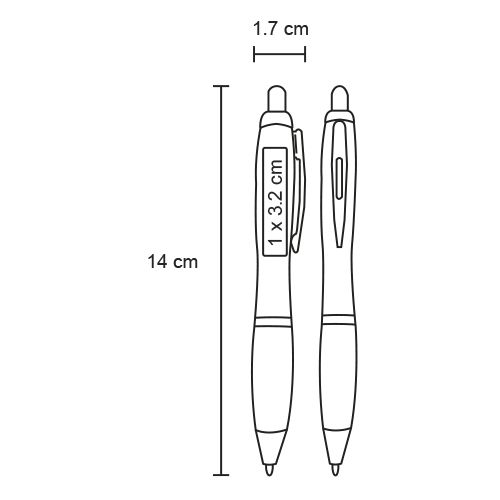 Bolígrafo de plástico traslúcido con clip metálico y grip de goma.