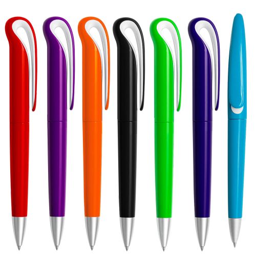 Bolígrafo de plástico de color sólido y mecanismo retráctil.