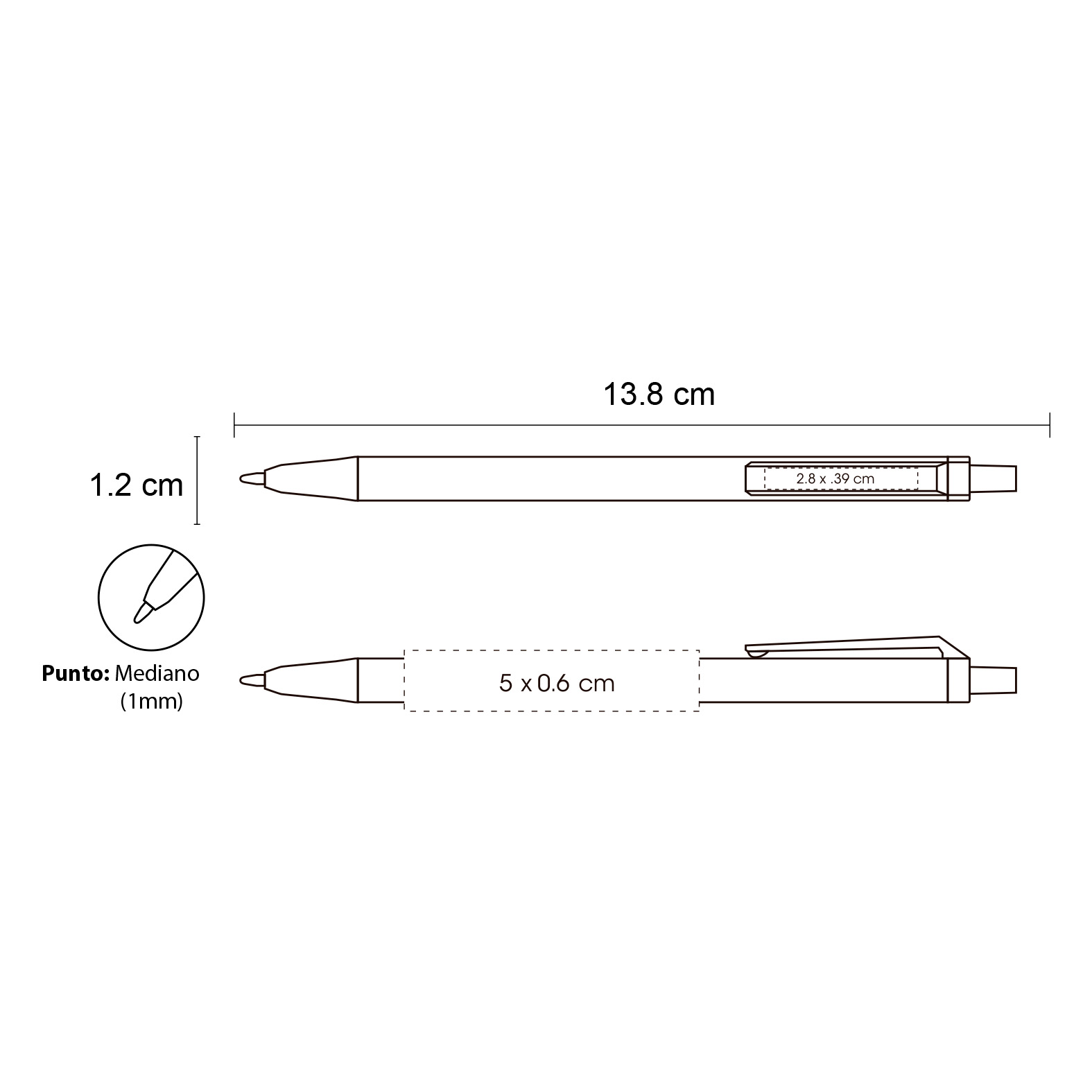 Bolígrafo de plástico de punto medio (1 mm); con clip y mecanismo de click.