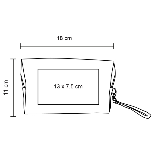 Cosmetiquera de PVC con acabado metálico; cierre; correa intercambiable y fuelle.