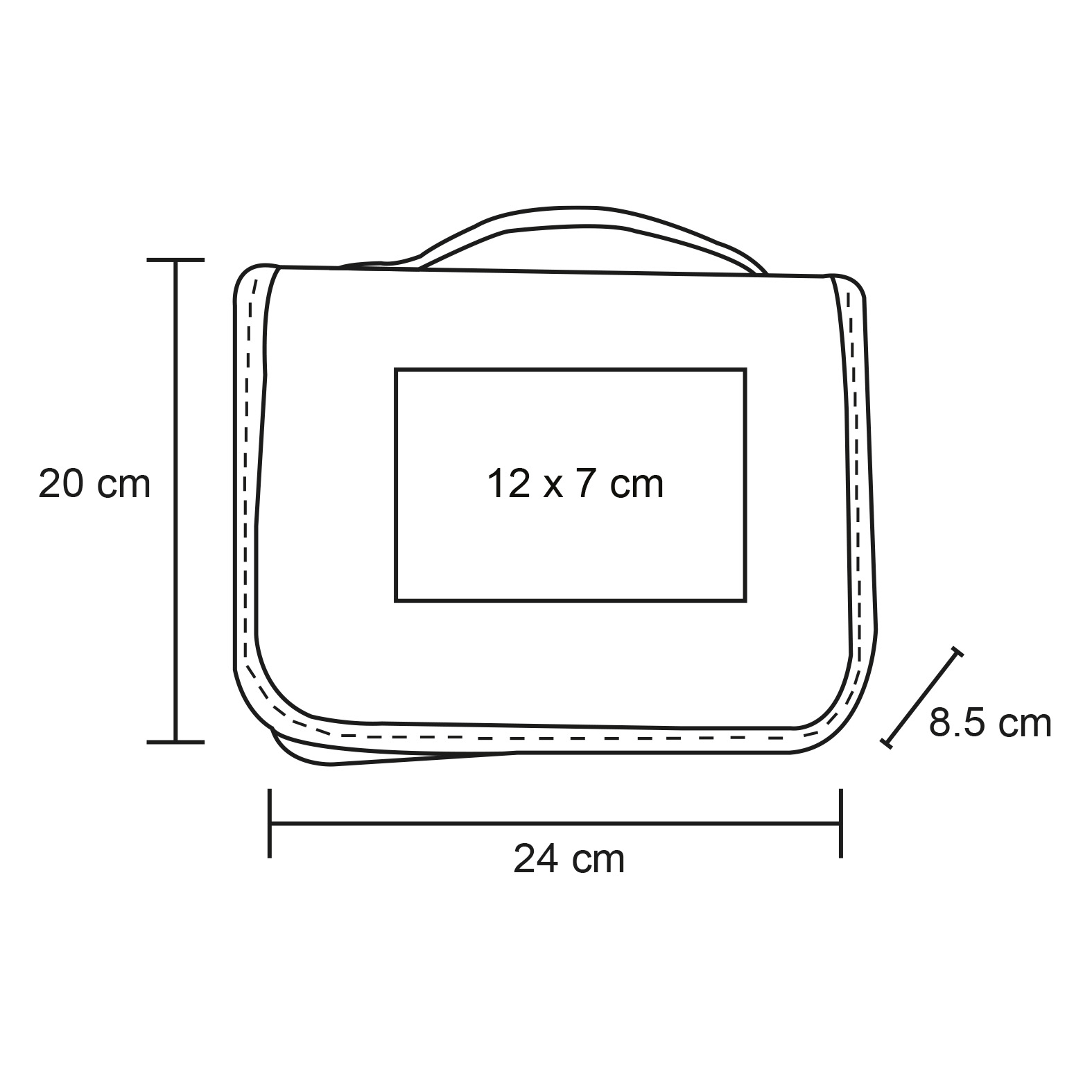 Estuche para viaje de poliéster con 1 compartimento principal con cierre y bolsa al interior; 2 compartimentos con malla; 1 compartimento transparente; gancho de plástico; asa y compartimento trasero.