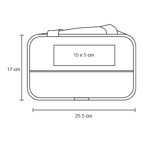 Cosmetiquera de plástico con parte superior transparente; costuras en color rosa; cierre y doble asa.