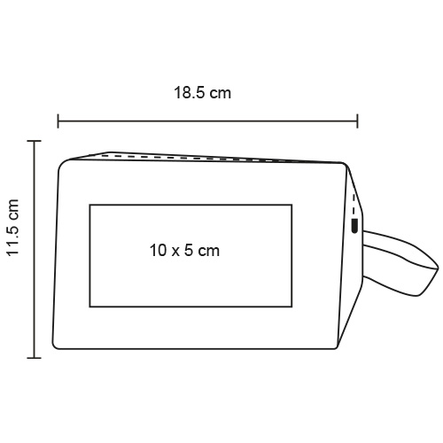 Cosmetiquera rectangular de plástico con acabado frost; asa y cierre.