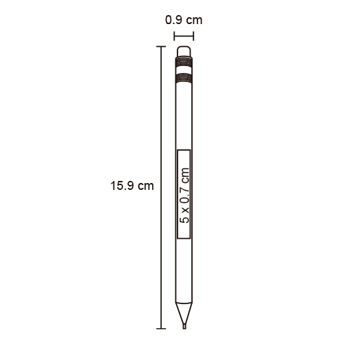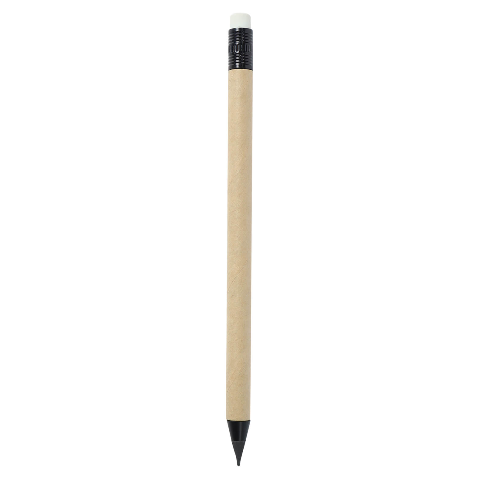 Bolígrafo de cartón libre de tinta que al contacto con la hoja se oxida; incluye goma.