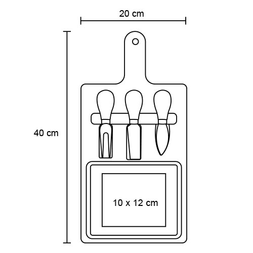 Set de tabla para quesos que incluye; 2 cuchillos y 1 tenedor para quesos.
