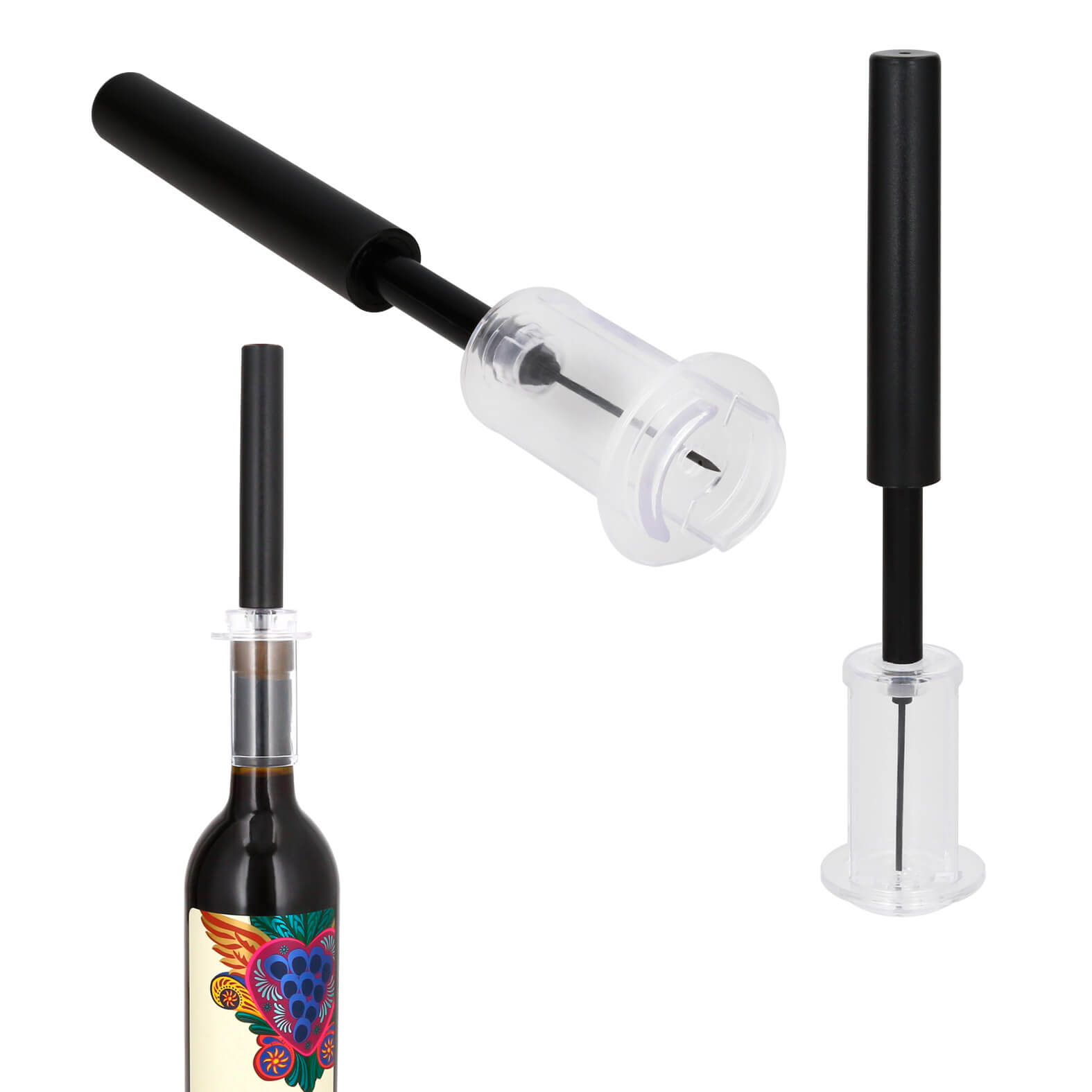 Sacacorchos manual de plástico con aguja de acero inoxidable.