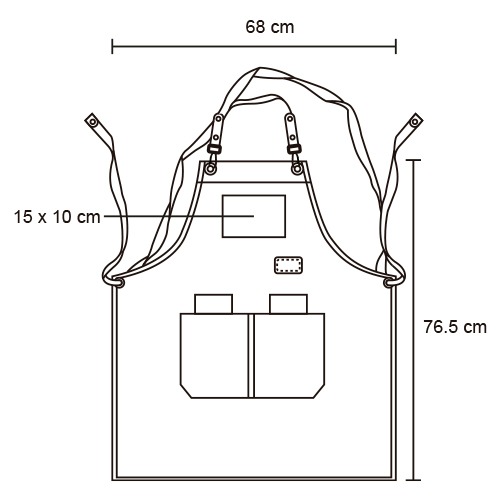 Delantal con dos bolsas frontales; 1 etiqueta frontal y correas ajustables.