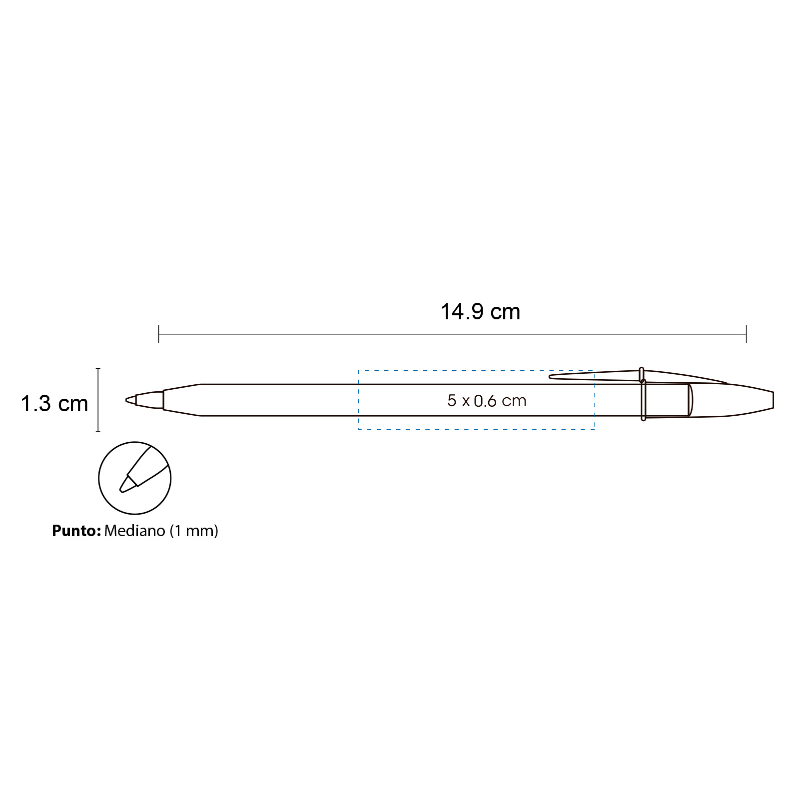 Bolígrafo de plástico traslúcido de punto mediano (1 mm) con tapa.