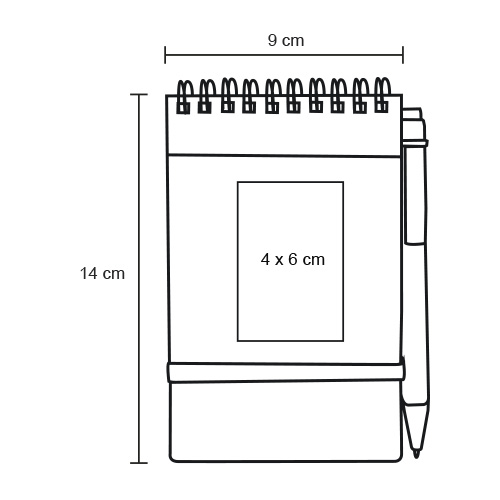 Libreta pocket de papel reciclado y bolígrafo; incluye: 70 hojas rayadas.
