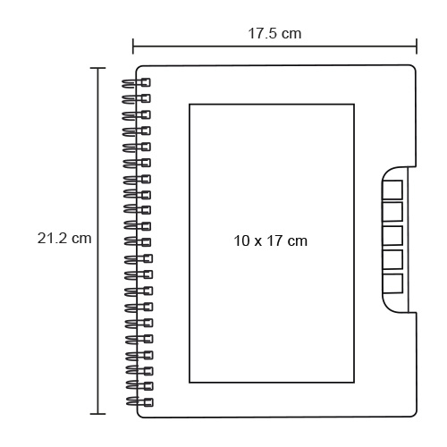 Libreta ecológica con 5 tiras de banderas adheribles y bolígrafo; cuenta con 80 hojas rayadas.