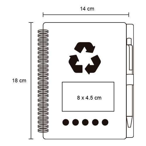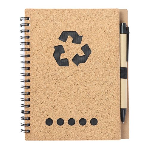 Libreta ecológica de corcho con espiral; bolígrafo y 70 hojas de raya.