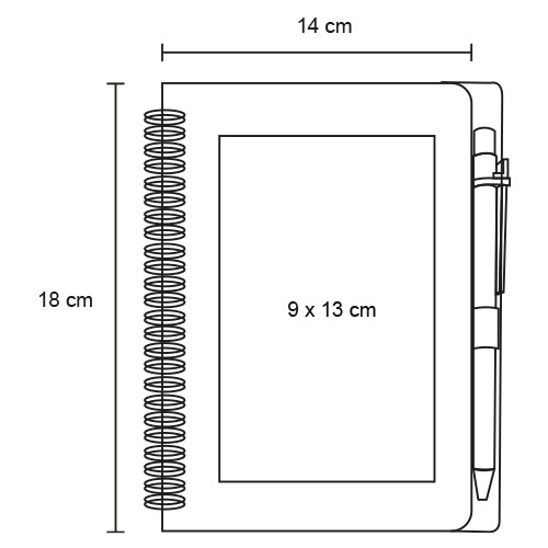 Libreta de cartón con espiral; 70 hojas y bolígrafo.