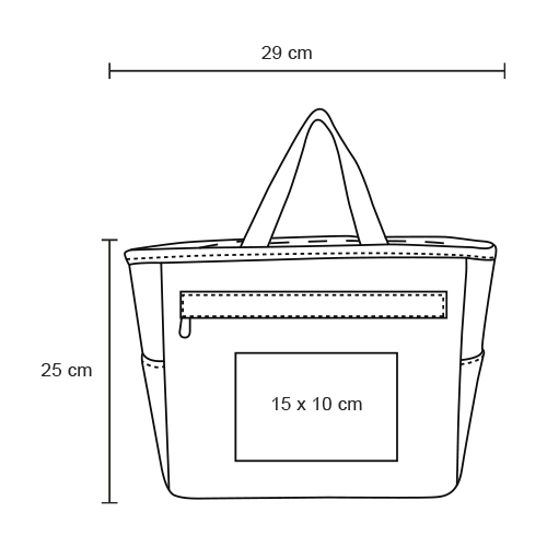 Hielera con interior impermeable; cierre; 1 bolsa frontal; 2 bolsas laterales y doble asa superior.