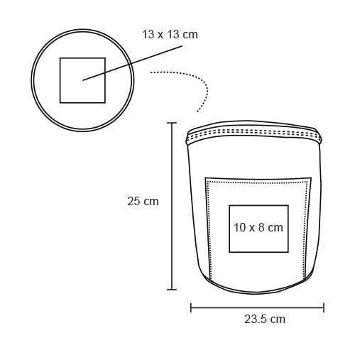 Hielera circular de poliéster con interior plástificado; bolsa frontal y correa ajustable.