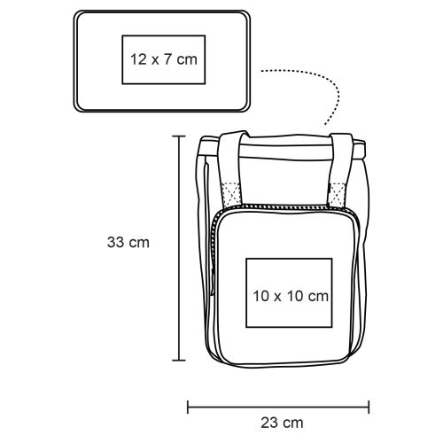Hielera con interior plastificado; sellado en compartimento principal; un compartimento secundario con cierre; malla lateral y asas superiores.