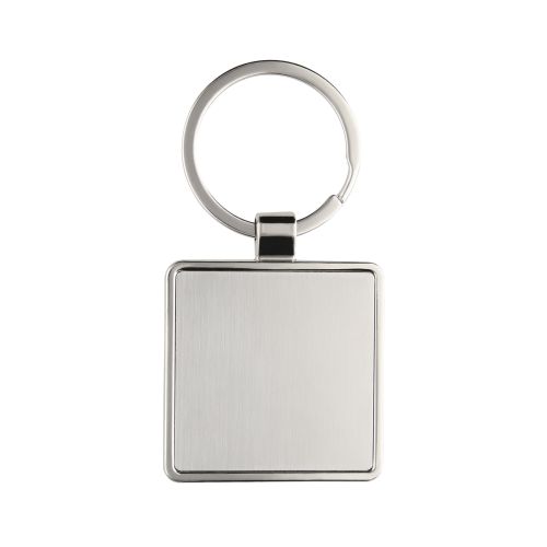 Llavero metálico de placa solida en forma de cuadrado con arillo reforzado.