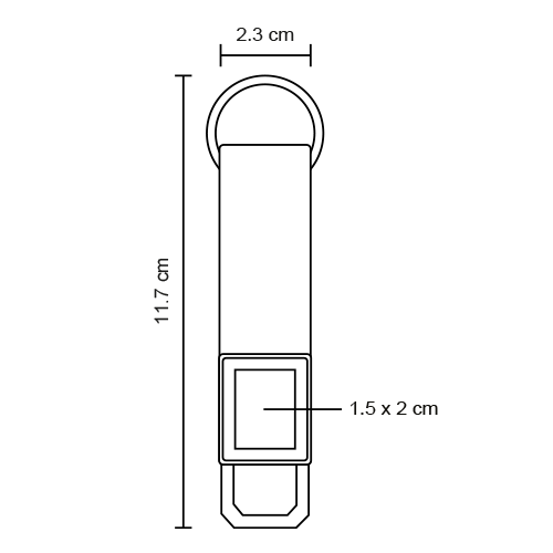 Llavero metálico con gancho de sujeción; correa de curpiel y rectángulo con acabado espejo.