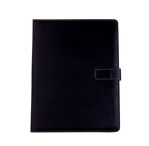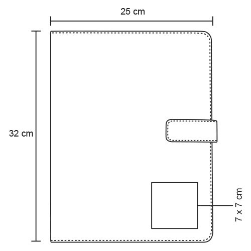 Carpeta de curpiel con block tamaño carta de rayas; compartimiento de tarjetas; porta bolígrafo y cierre magnético.