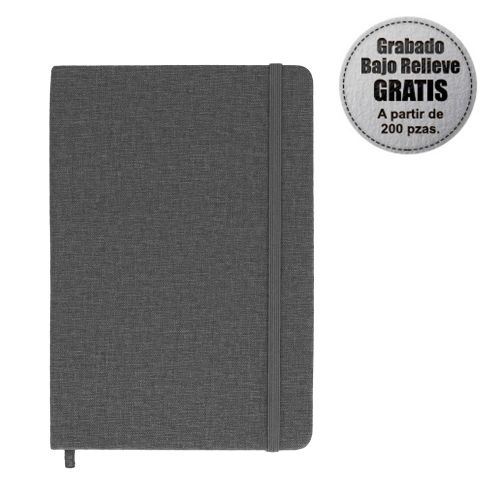 Libreta de poliuretano; banda elástica para sujetar cubierta y separador; con 90 hojas rayadas.