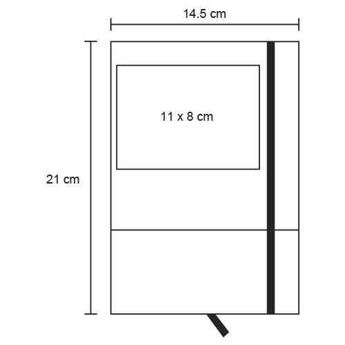 Libreta de poliuretano con detalle de corcho; banda elástica; 90 hojas rayadas y separador.