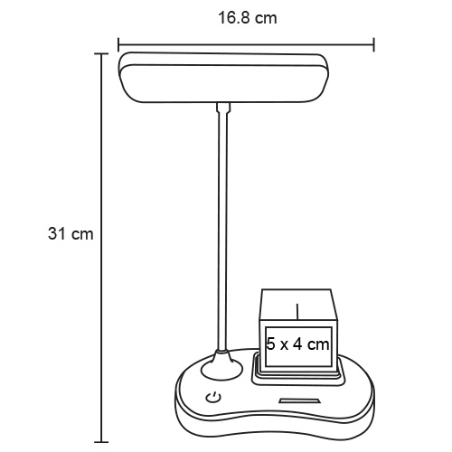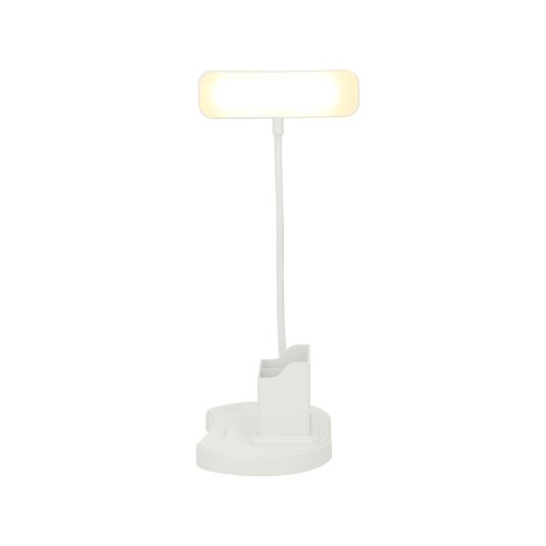 Lámpara para escritorio con multiorganizador; luz cálida y blanca; cargador incluido; potencia de 4w.
