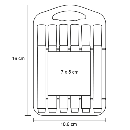 Set de plástico con broche que incluye 12 plumones de diferentes colores.