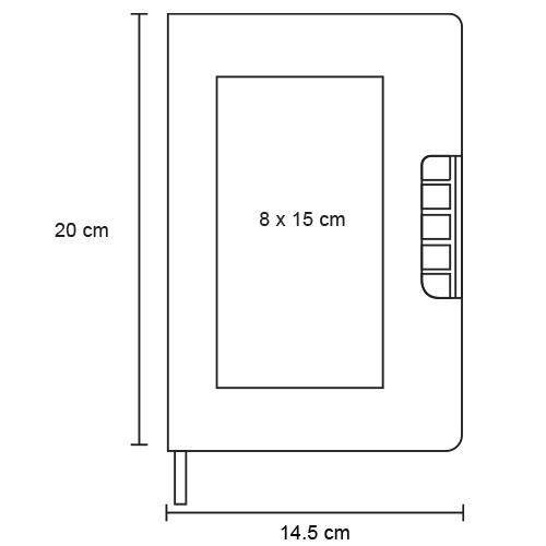 Libreta de poliuretano con 98 hojas rayadas; 5 banderas adhesivas; separador y banda elástica.