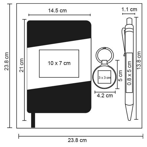 Set ejecutivo incluye: llavero metálico con detalle en bambú; bolígrafo de bambú; libreta y caja de regalo.