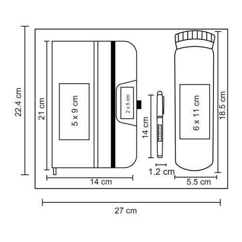 Set ejecutivo incluye: libreta de poliuretano con portada que sirve como soporte de celular; bolígrafo y termo con acabado rubber.