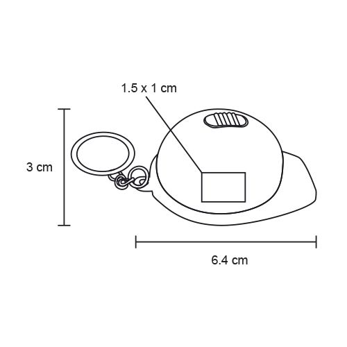 Llavero de plástico en forma de casco con destapador y luz LED blanca. Incluye baterías.