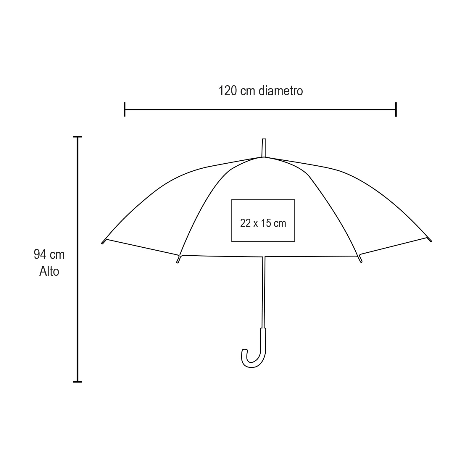 Paraguas de pongee con botón de apertura automática; 8 gajos; mango de plástico y cinta con velcro.