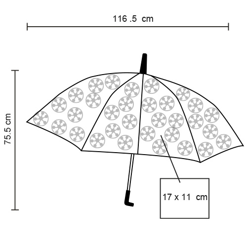 Paraguas mágico de apertura automática; 8 gajos; mango de plástico; broche de velcro y figuras de balón que se intensifican al contacto con el agua.
