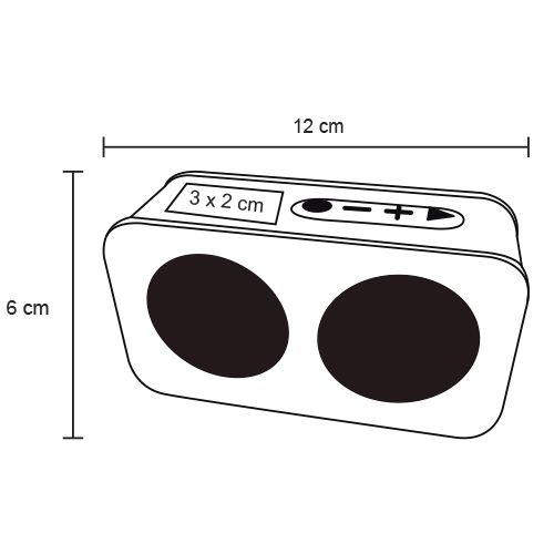 Bocina portátil de acabado rubber con Bluetooth; entrada SD; USB; radio FM y botones de color en contraste. Batería recargable con duración de 2-3 hrs.