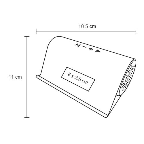 Bocina portátil de acabado rubber con radio FM; Bluetooth; entrada USB; auxiliar y micro SD. batería recargable con duración de 2-5 horas. Incluye cable de carga.
