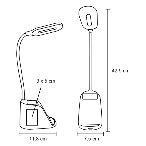Lámpara para escritorio negra con organizador y cargador Wireless para smartphones compatibles con tecnología Qi. Incluye cargador tipo usb.