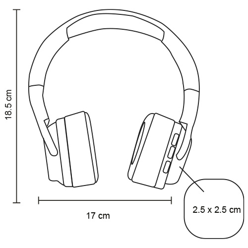 Audífonos inalámbricos plegables con diadema y orejeras acolchadas. Equipados con controles táctiles para adelantar/retroceder; ajustar el volumen y reproducir/pausar. Cuentan con micrófono; entrada TF; entrada auxiliar y radio FM; con tipo de carga C.