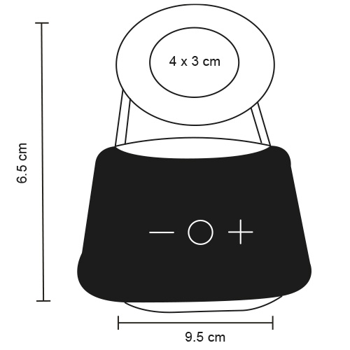 Bocina con bluetooth con controles adelante/atrás; play/pausa y carga tipo C. Cuenta con brazo retráctil que sirve como cargador wireless.
