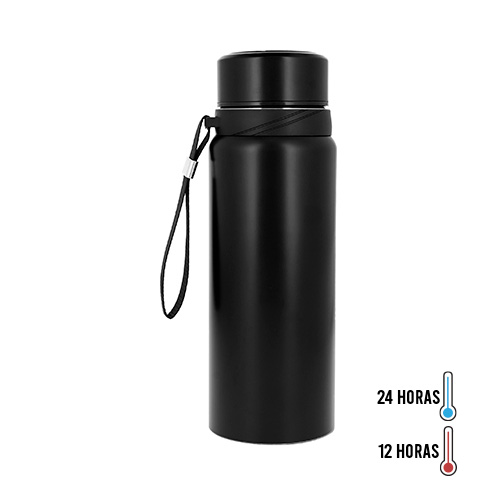 Termo con doble pared de acero inoxidable; insulado al vacío y acabado mate. Incluye filtro infusor y tapa enroscable.