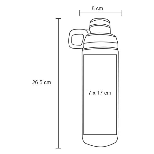 Termo de acero inoxidable con doble pared insulado al vacío; su tapa cuenta con una agarradera lateral y boquilla enroscable de seguridad.