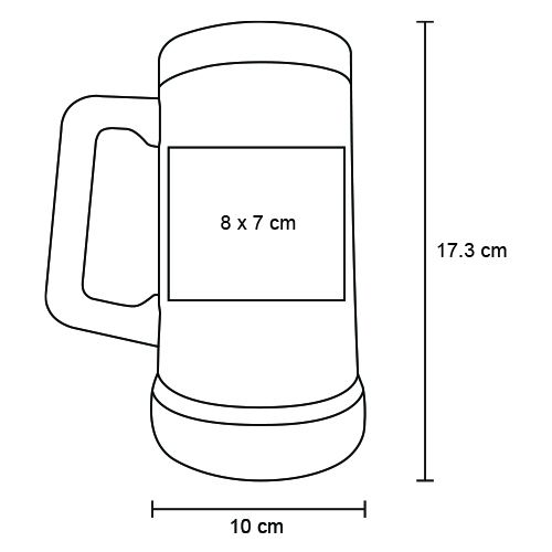 Tarro con doble pared de acero inoxidable; insulado al vacio y mango de plástico.