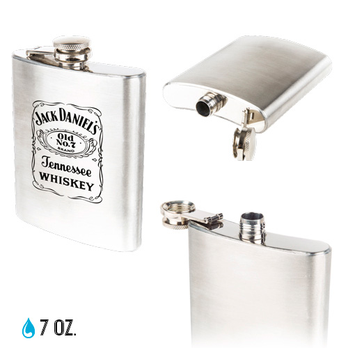 Licorera de bolsillo de acero inoxidable con tapa enroscable.