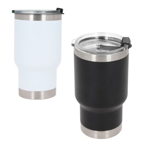 Termo con doble pared de acero inoxidable; insulado al vacío; acabado rugoso y tapa de cierre a presión.