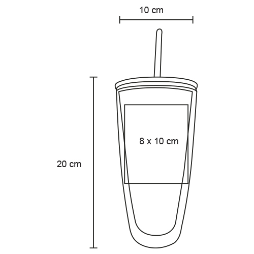 Vaso con doble pared de plástico; tapa enroscable y popote.
