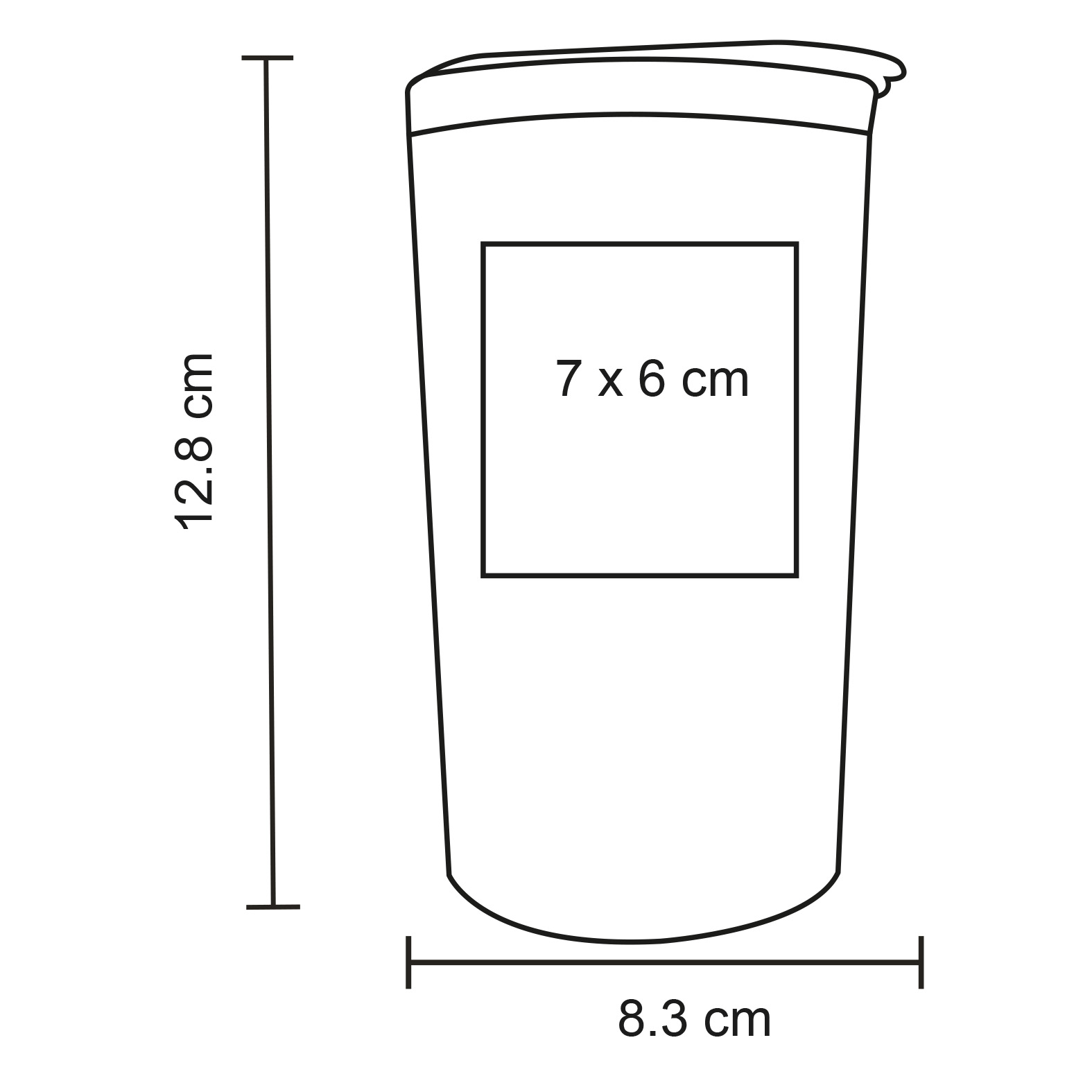 Termo de doble pared con exterior de acero inoxidable e interior de plástico; con tapa de cierre a presión y seguro deslizable.