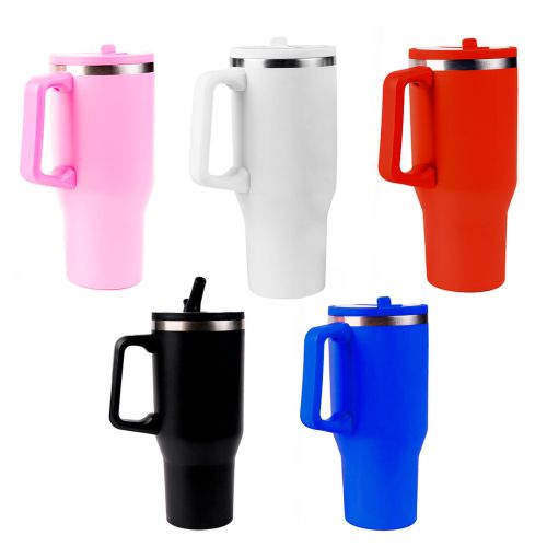 Termo con doble pared de acero inoxidable; insulado al vacio con acabado rugoso. Cuenta con asa lateral; tapa enrosacoble con boquilla abatible y popote.