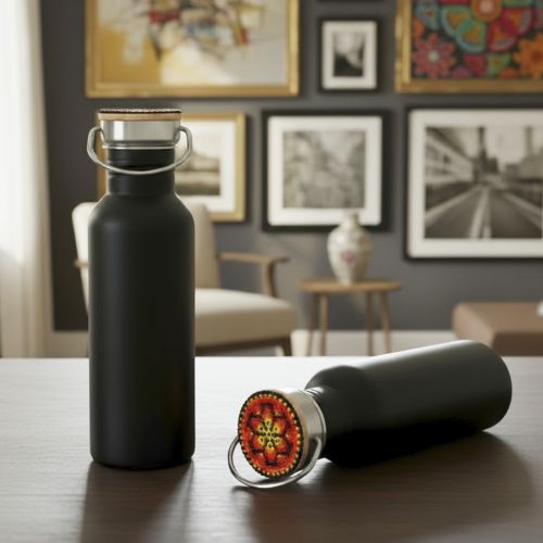 Cilindro de acero inoxidable con detalle de bambú en tapa. EDICIÓN HUICHOL.