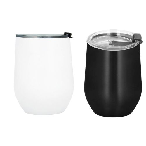 Termo de acero inoxidable de doble pared con tapa de cierre a presión transparente.